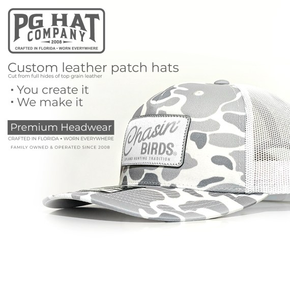 All hats are “one size fits most” snap-back trucker style in the Richardson 112 or Yupoong 6606 Classic Trucker. Also available in our private label duck camo trucker as well as the soft unstructured Legacy brand Dashboard Trucker snap-back.